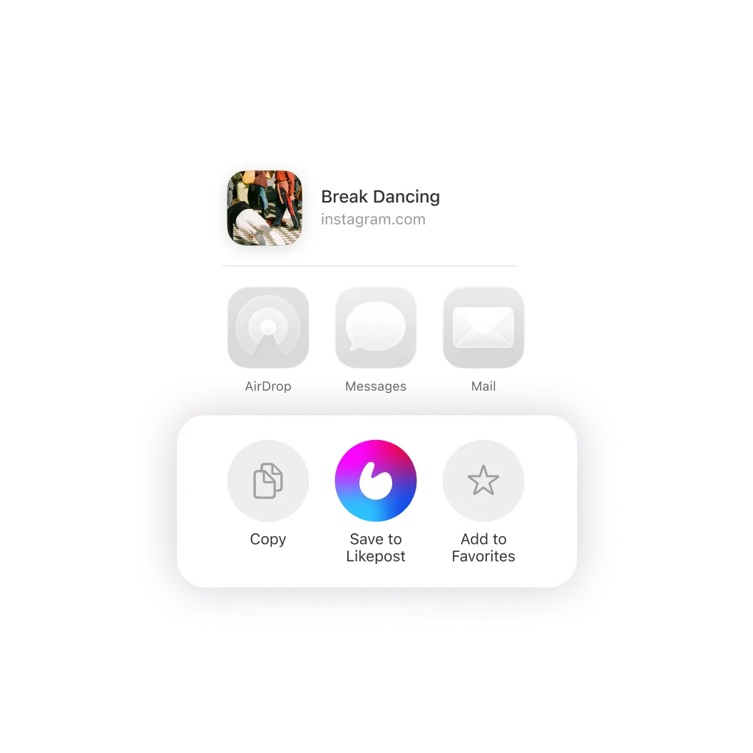Collect places, products, videos, and ideas. Likepost organizes them instantly.